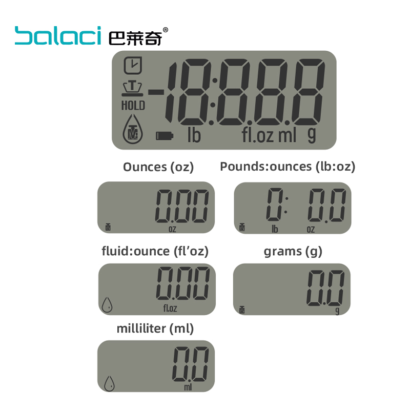| Unit: | g/oz/fl.oz/water ml/ lb:oz(oz) |